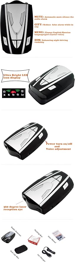 Enable or disable laser detection. Radar detector, city/highway mode 360 degree detection radar detectors with led display for cars, voice alert and car speed alarm system. 1 x non slip mat. It is a high performance radar/laser detector with reliable, proven performance. This radar detector features a laser eye detector for a 360 degree laser detection and easy to install.