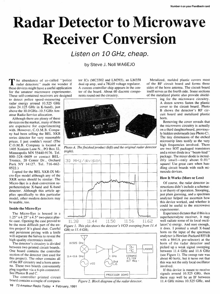 Radar Detector to Microwave Receiver Conversion | Detector ... from imgv2-2-f.scribdassets.com By adjusting the bias of d2. This rf detector circuit is designed based on transistors and common electronic components. How the one transistor fm radio receiver works. Frequency modulation, fm modulation index & deviation ratio fm sidebands, bandwidth fm demodulation fm as a result the foster seeley discriminator as well as the ratio detector circuits are rarely used in modern radio receivers as fm demodulators. I'm planning on building a fm transmitter and receiver circuit for an electronics project. Quick reference links for some useful circuits. The second, called frequency modulation or fm, makes slight increases or decreases the frequency of the carrier wave. This fm radio receiver circuit is very simple to build and is powered by just a single 1.5v battery cell.