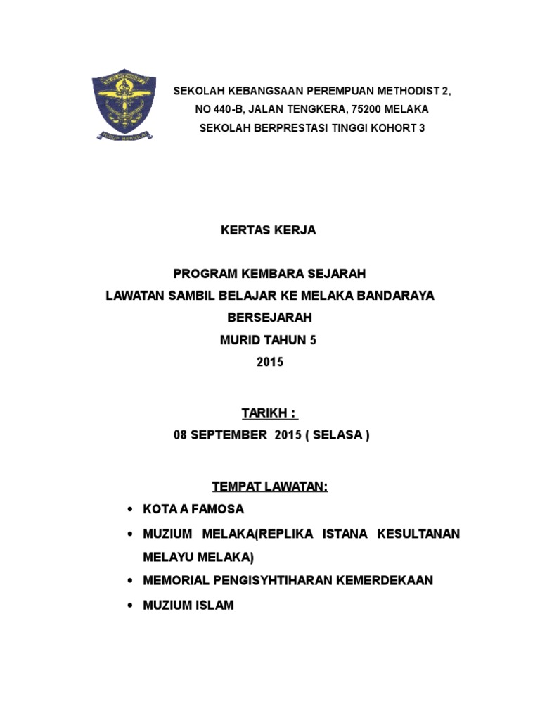 Kertas kerja lawatan ke penjara kajang. Kertas kerja cadangan penambahbaikan taman herba sekolah menengah kebangsaan tunku ismail 08000sungai p teaching learning one point perspective. Lawatan guru dan staff ke medan indonesia. Please copy and paste this embed script to where you want to embed. Contoh kertas kerja laporan lawatan format kertas kerja kertas sijil surat lawatan sambil belajar contoh kertas cadangan pengenalan kerja kursus perniagaan muka depan explore more like kertas kerja lawatan.